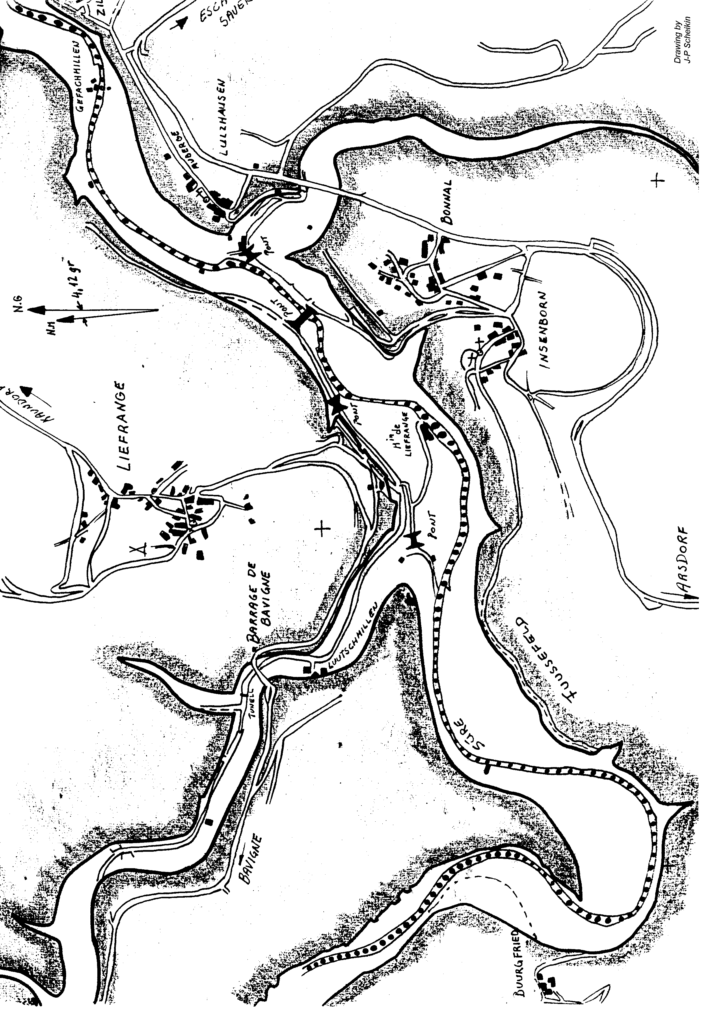 High resolution map of the "Haute Sûre" dive sites.